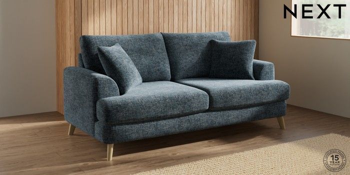 7.2.10 Parker 3 Seater Sofa Chunky Chenille Dark Navy Blue Low Retro Tapered - Light | Made Click here to use our website with more accessibility support, for example screen readers
