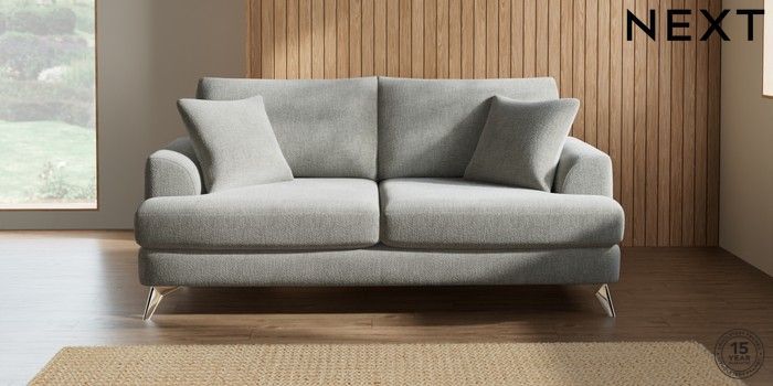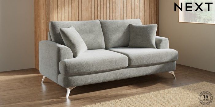 7.2.10 Parker 3 Seater Sofa Chunky Chenille Light Grey High Metal - Chrome | Made Click here to use our website with more accessibility support, for example screen readers