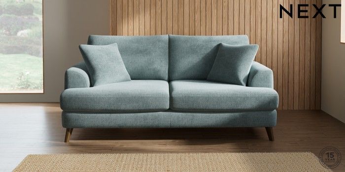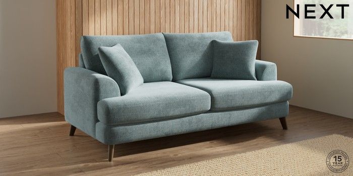 7.2.10 Parker 3 Seater Sofa Chunky Chenille Light Teal Green Low Retro Tapered - Mid | Made Click here to use our website with more accessibility support, for example screen readers