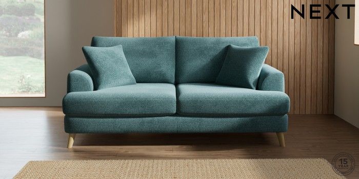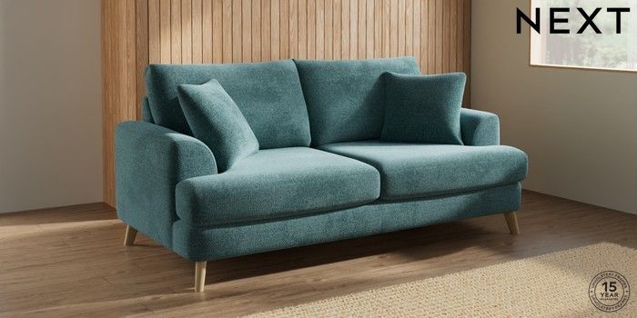 7.2.10 Parker 3 Seater Sofa Chunky Chenille Mid Teal Green Low Retro Tapered - Light | Made Click here to use our website with more accessibility support, for example screen readers