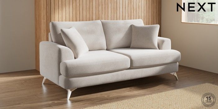 7.2.10 Parker 3 Seater Sofa Chunky Chenille Oyster High Metal - Chrome | Made Click here to use our website with more accessibility support, for example screen readers