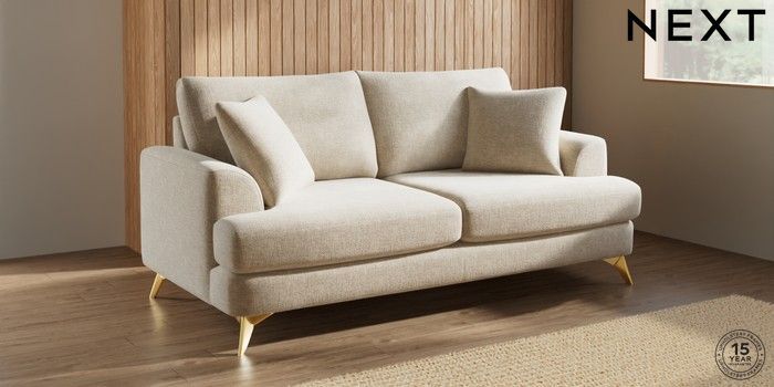 7.2.10 Parker 3 Seater Sofa Chunky Weave Cream High Metal - Brass | Made Click here to use our website with more accessibility support, for example screen readers