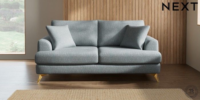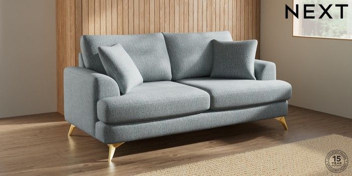 7.2.10 Parker 3 Seater Sofa Chunky Weave Mid Blue High Metal - Brass | Made Click here to use our website with more accessibility support, for example screen readers