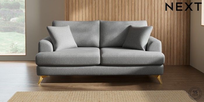 7.2.10 Parker 3 Seater Sofa Chunky Weave Mid Grey High Metal - Brass | Made Click here to use our website with more accessibility support, for example screen readers