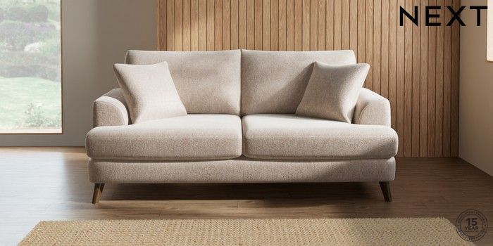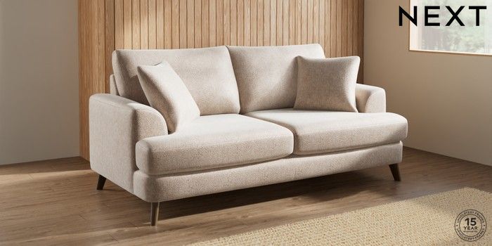 7.2.10 Parker 3 Seater Sofa Cotswold Chenille Light Natural Low Retro Tapered - Mid | Made Click here to use our website with more accessibility support, for example screen readers