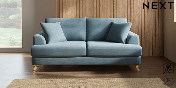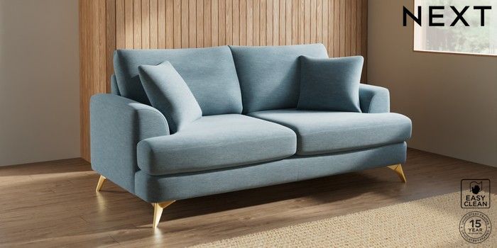 7.2.10 Parker 3 Seater Sofa Fine Chenille Easy Clean Mid Blue High Metal - Brass | Made Click here to use our website with more accessibility support, for example screen readers