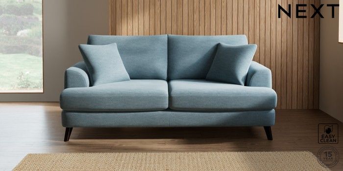 7.2.10 Parker 3 Seater Sofa Fine Chenille Easy Clean Mid Blue Low Retro Tapered - Dark | Made Click here to use our website with more accessibility support, for example screen readers