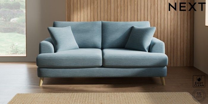 7.2.10 Parker 3 Seater Sofa Fine Chenille Easy Clean Mid Blue Low Retro Tapered - Light | Made Click here to use our website with more accessibility support, for example screen readers