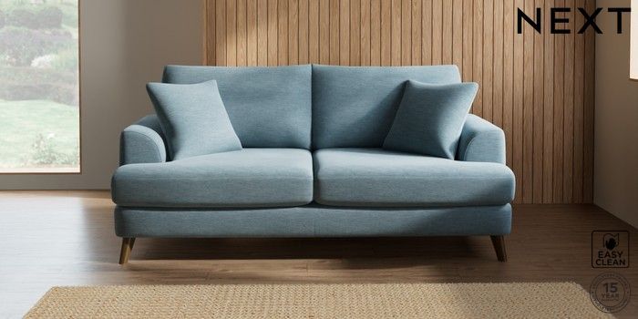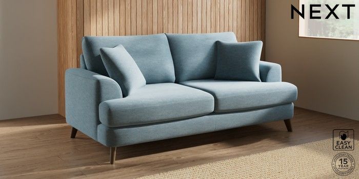 7.2.10 Parker 3 Seater Sofa Fine Chenille Easy Clean Mid Blue Low Retro Tapered - Mid | Made Click here to use our website with more accessibility support, for example screen readers