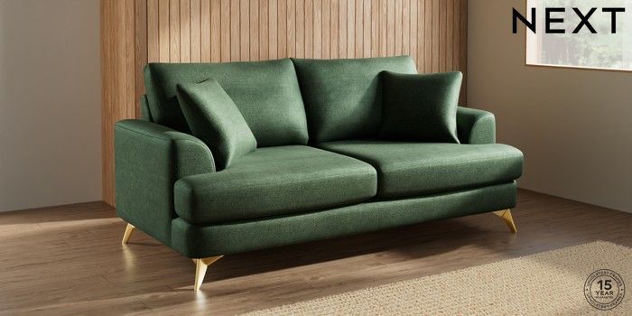 7.2.10 Parker 3 Seater Sofa Luxe Chenille Dark Green High Metal - Brass | Made Click here to use our website with more accessibility support, for example screen readers