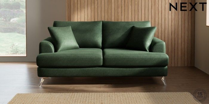 7.2.10 Parker 3 Seater Sofa Luxe Chenille Dark Green High Metal - Chrome | Made Click here to use our website with more accessibility support, for example screen readers