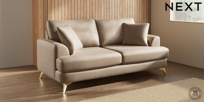 7.2.10 Parker 3 Seater Sofa Luxe Chenille Mid Camel Beige High Metal - Brass | Made Click here to use our website with more accessibility support, for example screen readers