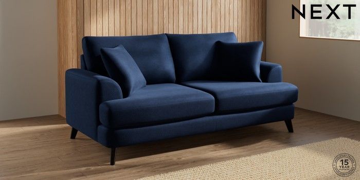 7.2.10 Parker 3 Seater Sofa Luxe Chenille Navy Blue Low Retro Tapered - Dark | Made Click here to use our website with more accessibility support, for example screen readers