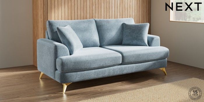 7.2.10 Parker 3 Seater Sofa Plush Chenille Light Blue High Metal - Brass | Made Click here to use our website with more accessibility support, for example screen readers