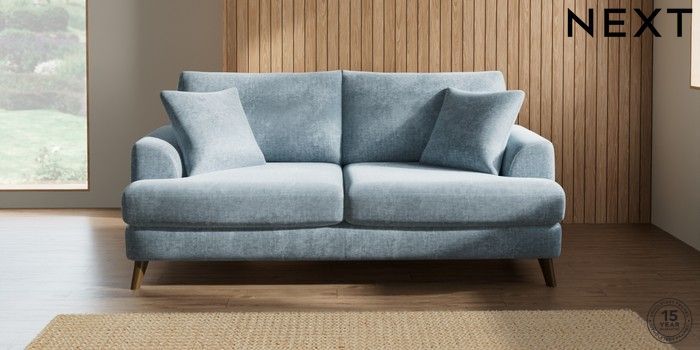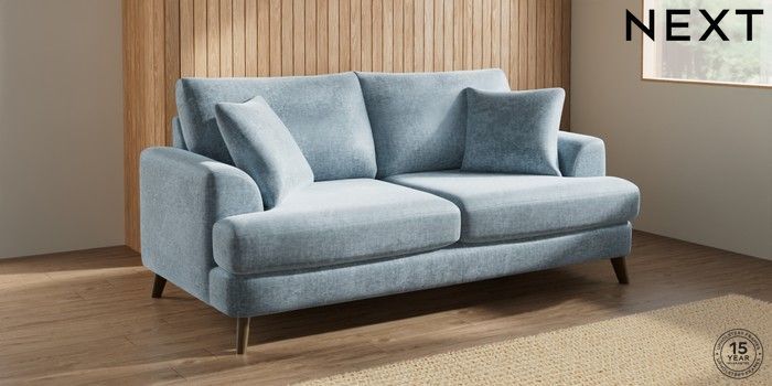 7.2.10 Parker 3 Seater Sofa Plush Chenille Light Blue Low Retro Tapered - Mid | Made Click here to use our website with more accessibility support, for example screen readers
