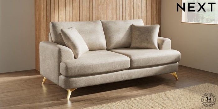 7.2.10 Parker 3 Seater Sofa Plush Chenille Light Natural High Metal - Brass | Made Click here to use our website with more accessibility support, for example screen readers