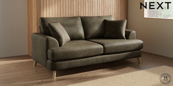 7.2.10 Parker 3 Seater Sofa Plush Chenille Moss Green Low Retro Tapered - Light | Made Click here to use our website with more accessibility support, for example screen readers
