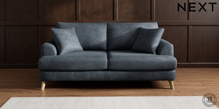 7.2.10 Parker 3 Seater Sofa Plush Chenille Slate Blue Low Retro Tapered - Light | Made Click here to use our website with more accessibility support, for example screen readers