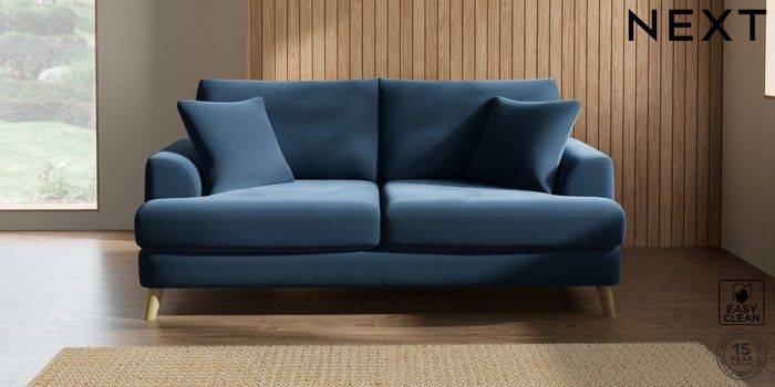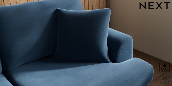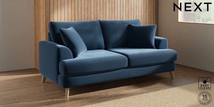 7.2.10 Parker 3 Seater Sofa Plush Velvet Easy Clean Airforce Blue Low Retro Tapered - Light | Made Click here to use our website with more accessibility support, for example screen readers