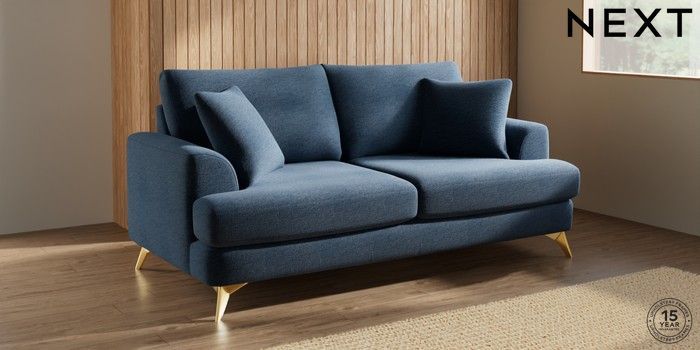 7.2.10 Parker 3 Seater Sofa Ripple Chenille Dark Blue High Metal - Brass | Made Click here to use our website with more accessibility support, for example screen readers