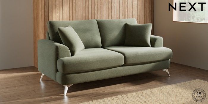 7.2.10 Parker 3 Seater Sofa Ripple Chenille Mid Moss Green High Metal - Chrome | Made Click here to use our website with more accessibility support, for example screen readers