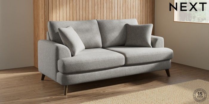 7.2.10 Parker 3 Seater Sofa Tweedy Chenille Mid Grey Low Retro Tapered - Mid | Made Click here to use our website with more accessibility support, for example screen readers