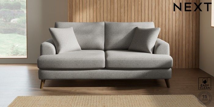 7.2.10 Parker 3 Seater Sofa Woven Chenille Easy Clean Light Grey Low Retro Tapered - Mid | Made Click here to use our website with more accessibility support, for example screen readers
