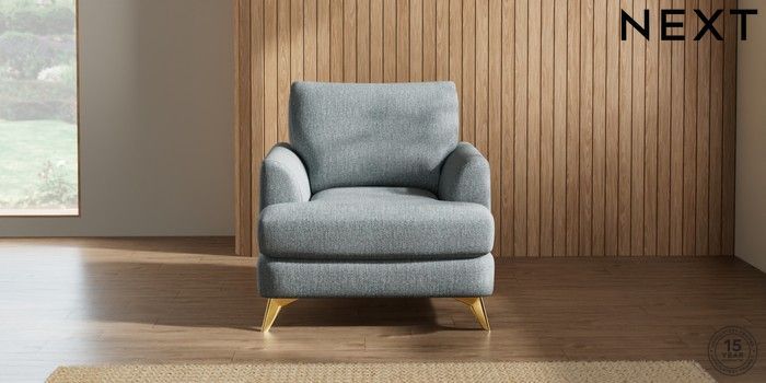 7.2.10 Parker Armchair Chunky Weave Mid Blue High Metal - Brass | Made Click here to use our website with more accessibility support, for example screen readers