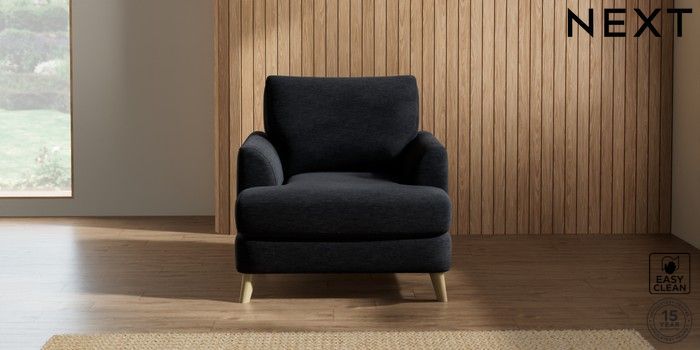 7.2.10 Parker Armchair Fine Chenille Easy Clean Black Low Retro Tapered - Light | Made Click here to use our website with more accessibility support, for example screen readers