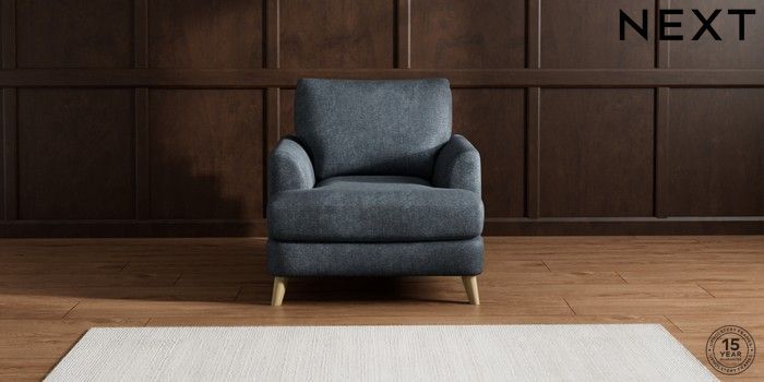 7.2.10 Parker Armchair Plush Chenille Slate Blue Low Retro Tapered - Light | Made Click here to use our website with more accessibility support, for example screen readers