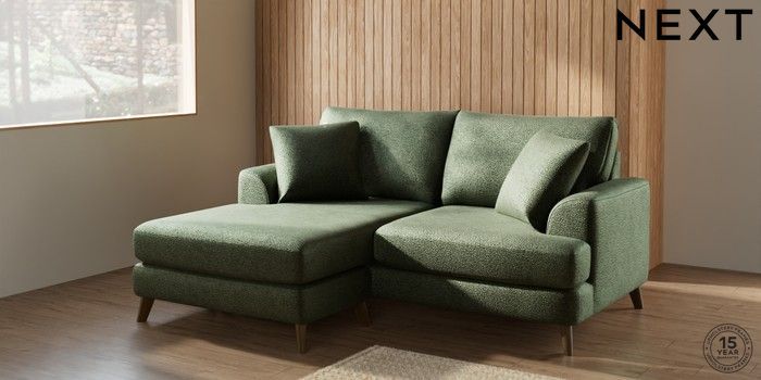 7.2.10 Parker Compact Sofa Chaise - Universal Boucle Chenille Dark Moss Green Low Retro Tapered - Mid | Made Click here to use our website with more accessibility support, for example screen readers