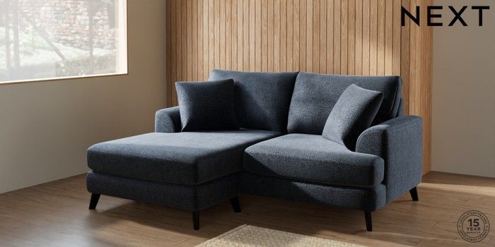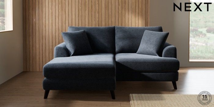 7.2.10 Parker Compact Sofa Chaise - Universal Boucle Chenille Dark Slate Blue Low Retro Tapered - Dark | Made Click here to use our website with more accessibility support, for example screen readers