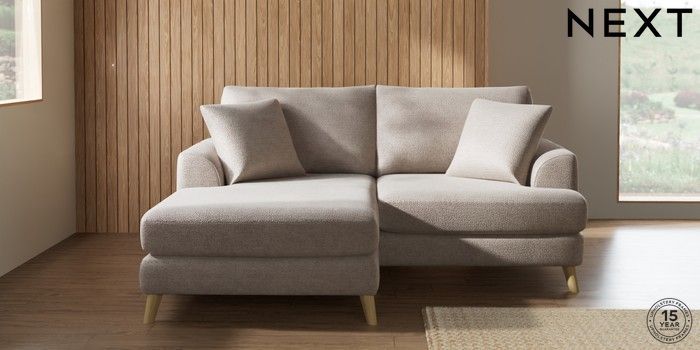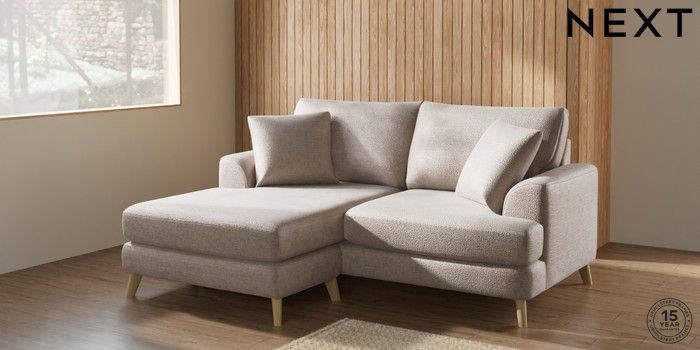 7.2.10 Parker Compact Sofa Chaise - Universal Boucle Chenille Light Natural Low Retro Tapered - Light | Made Click here to use our website with more accessibility support, for example screen readers