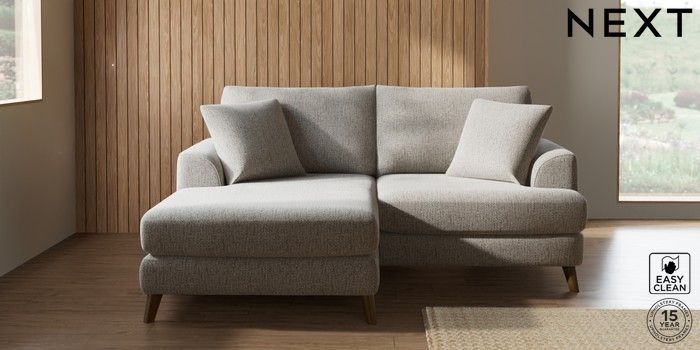7.2.10 Parker Compact Sofa Chaise - Universal Chunky Boucle Easy Clean Dove Low Retro Tapered - Mid | Made Click here to use our website with more accessibility support, for example screen readers