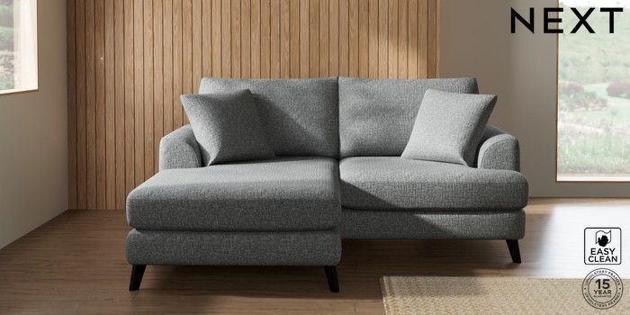 7.2.10 Parker Compact Sofa Chaise - Universal Chunky Boucle Easy Clean Mid Grey Low Retro Tapered - Dark | Made Click here to use our website with more accessibility support, for example screen readers