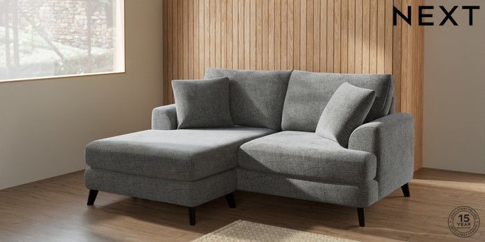 7.2.10 Parker Compact Sofa Chaise - Universal Chunky Chenille Dark Grey Low Retro Tapered - Dark | Made Click here to use our website with more accessibility support, for example screen readers