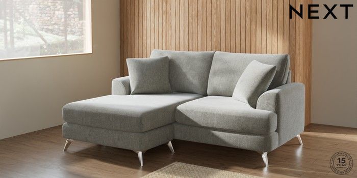 7.2.10 Parker Compact Sofa Chaise - Universal Chunky Chenille Light Grey High Metal - Chrome | Made Click here to use our website with more accessibility support, for example screen readers