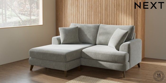 7.2.10 Parker Compact Sofa Chaise - Universal Chunky Chenille Light Grey Low Retro Tapered - Mid | Made Click here to use our website with more accessibility support, for example screen readers