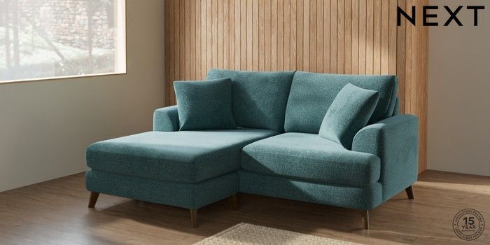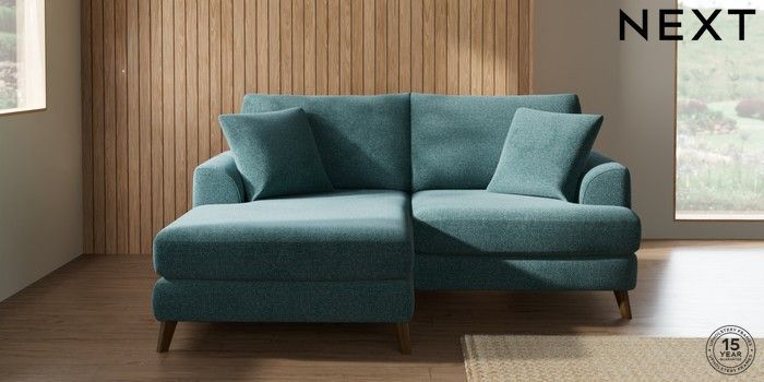 7.2.10 Parker Compact Sofa Chaise - Universal Chunky Chenille Mid Teal Green Low Retro Tapered - Mid | Made Click here to use our website with more accessibility support, for example screen readers