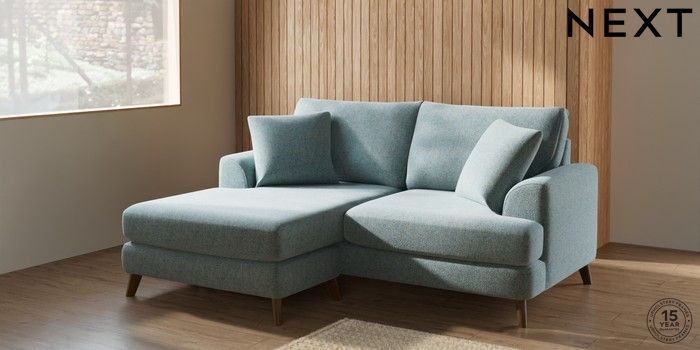 7.2.10 Parker Compact Sofa Chaise - Universal Chunky Marl Mid Blue Low Retro Tapered - Mid | Made Click here to use our website with more accessibility support, for example screen readers
