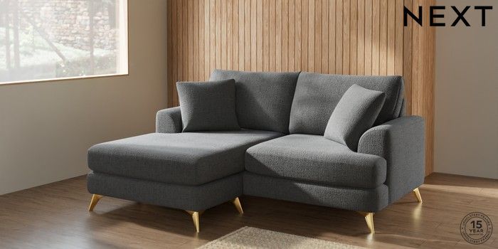 7.2.10 Parker Compact Sofa Chaise - Universal Chunky Texture Dark Grey High Metal - Brass | Made Click here to use our website with more accessibility support, for example screen readers