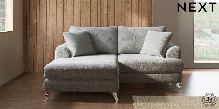 7.2.10 Parker Compact Sofa Chaise - Universal Chunky Texture Dove High Metal - Chrome | Made Click here to use our website with more accessibility support, for example screen readers