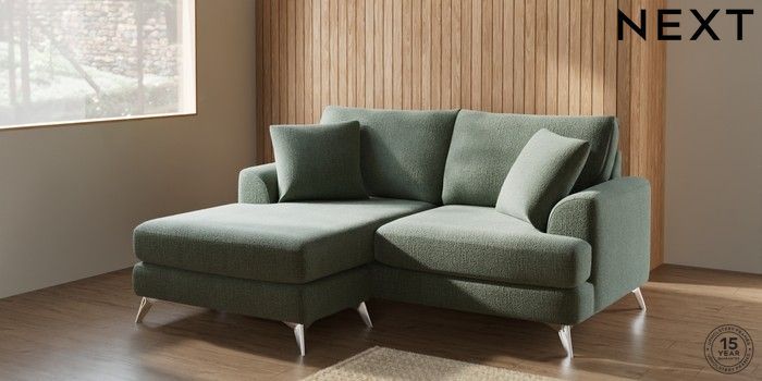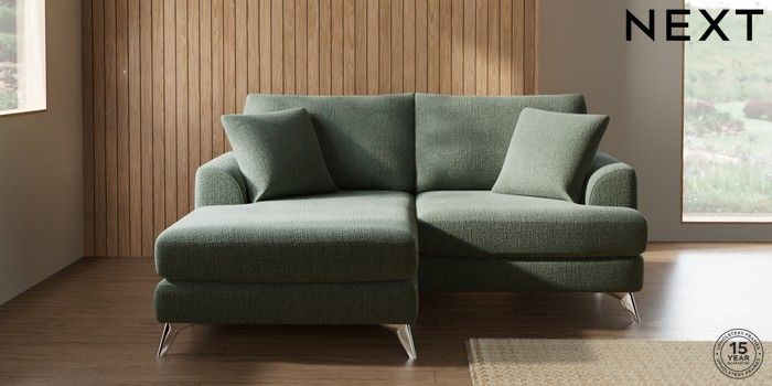 7.2.10 Parker Compact Sofa Chaise - Universal Chunky Texture Mid Forest Green High Metal - Chrome | Made Click here to use our website with more accessibility support, for example screen readers