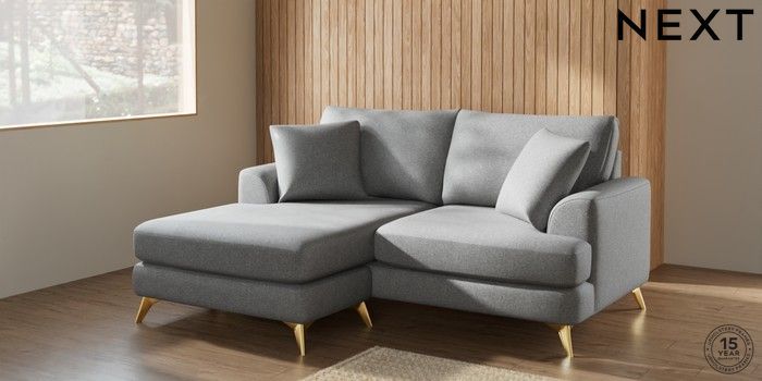 7.2.10 Parker Compact Sofa Chaise - Universal Chunky Weave Mid Grey High Metal - Brass | Made Click here to use our website with more accessibility support, for example screen readers