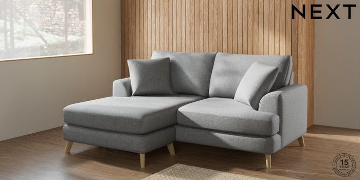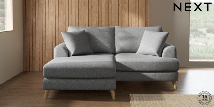 7.2.10 Parker Compact Sofa Chaise - Universal Chunky Weave Mid Grey Low Retro Tapered - Light | Made Click here to use our website with more accessibility support, for example screen readers