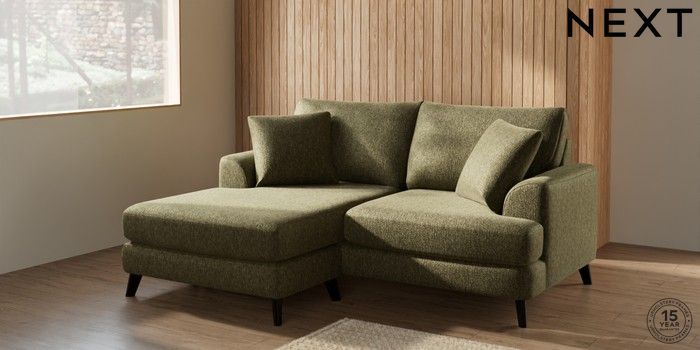 7.2.10 Parker Compact Sofa Chaise - Universal Cotswold Chenille Dark Green Low Retro Tapered - Dark | Made Click here to use our website with more accessibility support, for example screen readers