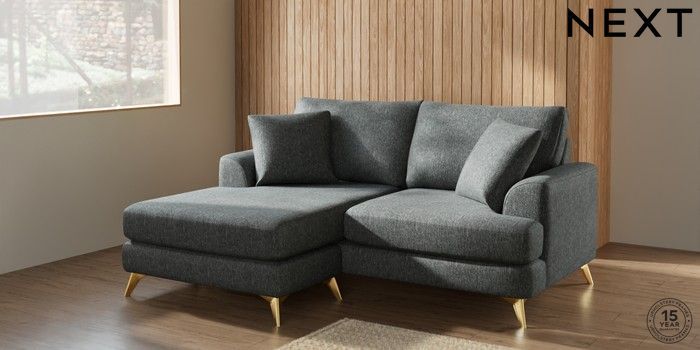 7.2.10 Parker Compact Sofa Chaise - Universal Cotswold Chenille Dark Grey High Metal - Brass | Made Click here to use our website with more accessibility support, for example screen readers