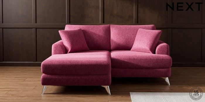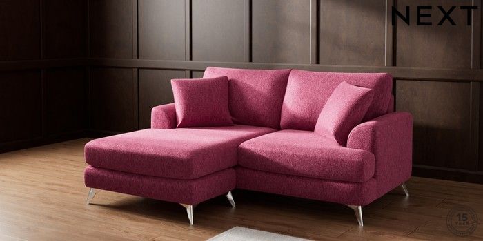7.2.10 Parker Compact Sofa Chaise - Universal Cotswold Chenille Dark Raspberry Pink High Metal - Chrome | Made Click here to use our website with more accessibility support, for example screen readers