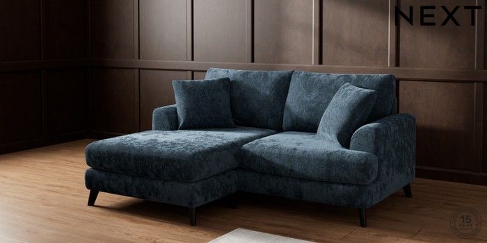 7.2.10 Parker Compact Sofa Chaise - Universal Distressed Velour Midnight Blue Low Retro Tapered - Dark | Made Click here to use our website with more accessibility support, for example screen readers