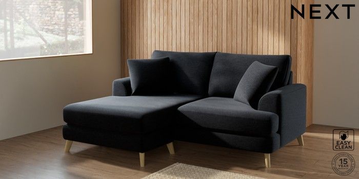 7.2.10 Parker Compact Sofa Chaise - Universal Fine Chenille Easy Clean Black Low Retro Tapered - Light | Made Click here to use our website with more accessibility support, for example screen readers